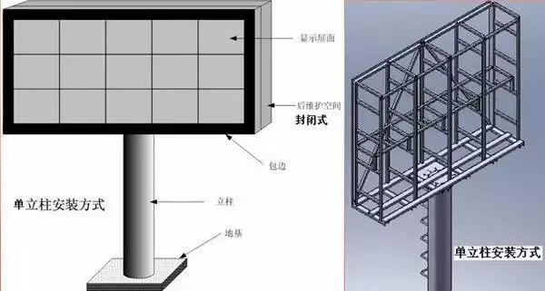 立柱式安裝方式有多種,一般作戶外廣告牌使用: