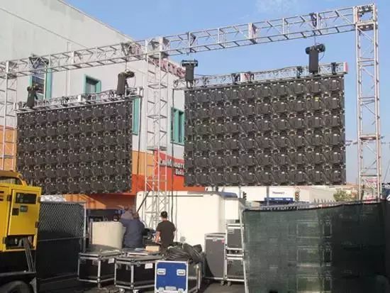 吊裝屏不宜做大。一般要求在6M*10M以下。特殊箱體材質和條幕式的例外。
